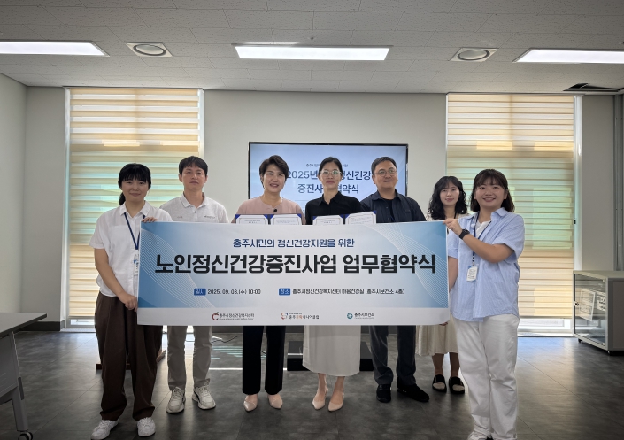충주문화시니어클럽과의 업무협약을 통해 노년층 시민들의 정신건강 문제를 조기에 발견하고 최적의 시기에 정신건강 지원을 통하여 충주시 노년층에게 정신건강 서비스를 신속하게 받아 볼 수 있다.